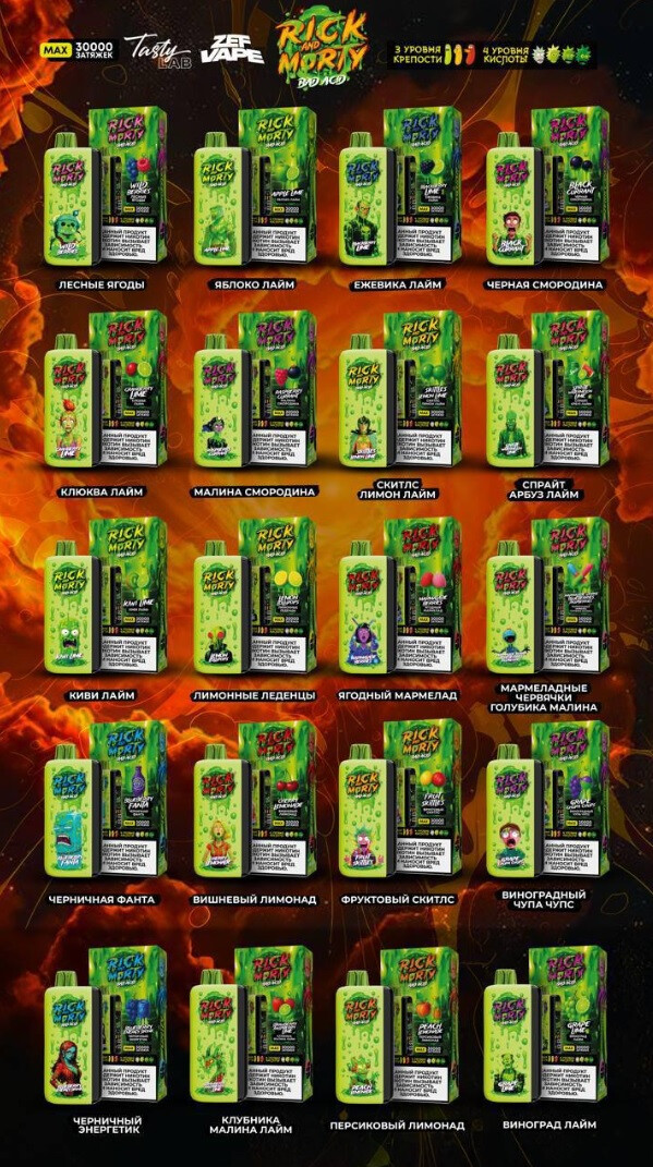 RICK and MORTY BAD ACID 30000 затяжек — мощное одноразовое устройство с яркими кислотными вкусами, увеличенным ресурсом и стабильной тягой. Отличный выбор для розницы и оптовых закупок с доставкой по РФ и СНГ.
