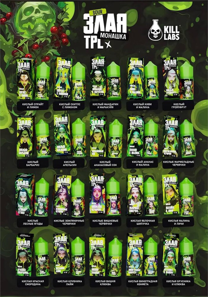 Жидкость ЗЛАЯ МОНАШКА SOUR & TPL 30ML 20MG HARD — крепкий вариант с насыщенным кисло-сладким вкусом из линейки SOUR & TPL. Объём 30 мл и содержание никотина 20 мг обеспечивают яркий вкус и быстрый эффект. Отличный выбор для розницы и опта с доставкой по Р